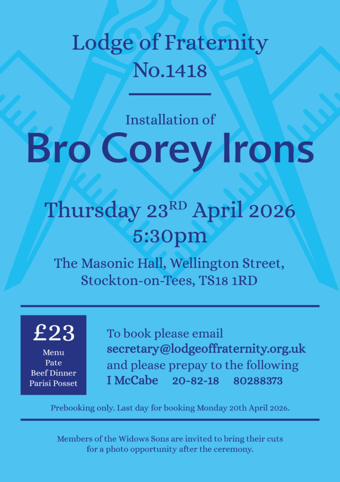 Coreys installation at the Masonic Hall, Wellingston Street, Stockton-On-Tees, TS18 1RD at 5:30pm
